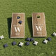 This Modern, Rustic corn hole set features your family monogram and name over a Wood Texture Brown in a retro cool typography design. Customize with your family name and initial and make this your own unique summer game set for the farmhouse style beach or lake house, family cottage, or cabin.