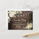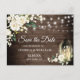 Wood White Roses Rustic Wedding Save the Date Postcard.