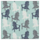 This fabric features illustrations of wooden Adirondack chairs in charcoal gray, navy blue and eggshell white set against a light aqua blue colored background. The pattern is perfect for crafting projects with a outdoors or summer feel.