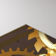 Brown wooden background with sea, mechanical ridge, an antique steering wheel, golden anchor and various gold and brass gears. Steampunk style.