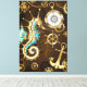 Wooden Background with Mechanical Seahorse Canvas Print