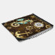 Brown wooden background with sea, mechanical ridge, an antique steering wheel, golden anchor and various gold and brass gears. Steampunk style.
