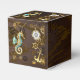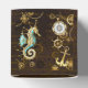 Wooden Background with Mechanical Seahorse Favor Boxes