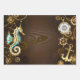 Wooden Background with Mechanical Seahorse Wrapping Paper Sheets