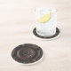 This coaster is decorated with an image of a beautiful artistic wood carving in shades of brown, gold, mahogany and black. A central abstract circular flower image has petals radiating out to a carved circle.