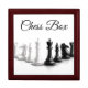 The Wooden Chess Storage Box features assorted chess pieces against a white background. The text "Chess Box" is on the front but is also easily edited. This box can be used for a box for chess pieces easily or for a stylish storage option.