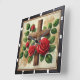 This classic square wall clock features a rustic wooden cross, appearing to be crafted from natural bark. It is beautifully adorned with vibrant red roses and lush green leaves, creating a powerful yet serene spiritual design. This timeless piece blends natural elements with sacred symbolism for a comforting home accent.