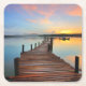 Wooden Dock Seascape in Colorful Sunset Square Paper Coaster