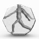 Wooden male mannequin with wavy lines of different width creating the image. Original design in black and white.