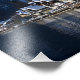 Photo print of the facades of the wooden houses at the lakeside of Hallstätter See lake under a layer of fresh snow in winter in Hallstatt, Austria.