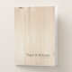 Wooden pocket folder features a fine light brown wood grain textured background on its front and back sides with custom text. © Morning 6