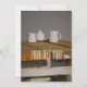 Wooden Rustic Table, Tea Coffee Pot, White Cups / Mugs 'Your Text Here!' invitation card to add to your special occasion cards / mailing list accessories. A cool gift / present idea for all who love positive vibes colors, humor and funky prints, custom design personalized original and unique items, nature, summer happy vibes etc. Grey, countryside, rural, dining, lunch etc.