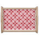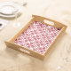Wooden serving tray red & white geometric pattern