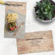 The vertical format front design features a wooden table place setting with template name and title at the top. The back includes text fields for the business name and details. Fill in the template fields or edit using the design tool to select a font style, size, and color you like.