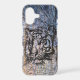 This unique phone case features a hand drawn tiger image superimposed over a blue and gray cast wood background. The result is a stunning and unique image.