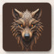 Wooden Wolf Art Carving with Geometric Patterns Beverage Coaster