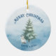 Celebrate the holiday season with this double-sided, customizable, festive Christmas ornament featuring a charming winter scene on a soothing watercolor background. One side there is a picturesque scene of adorable forest animals, surrounded by snow-covered trees. The backside features an individual arctic hare wishing you or your loved ones a Merry Christmas. The frosty blue and white color palette creates a peaceful, snowy wonderland feel. Personalize with your family name and the year to add a special touch. Perfect for spreading holiday cheer to loved ones, this ornament exudes warmth, magic, and personalized elegance. Please email me with any questions about editing or design at pawsnclawspaperie@gmail.com.
