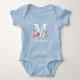 Cute woodland initial monogram baby bodysuit, featuring your child's name with two little woodland animals sitting either side of their monogram initial, a fox cub and a sweet bunny rabbit. A perfect keepsake to treasure! Designed by Thisisnotme©