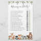 Woodland animals themed baby shower mommy or daddy game card features a watercolor woodland animals illustration and watercolor greenery eucalyptus garland and elegant handwritten style font.