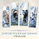 Immerse yourself in the enchanting world of Sapphire Woodland Floral Animals bookmarks, perfect for nature and animal lovers. This set includes 4 unique bookmarks on a single sheet, each adorned with whimsical woodland creatures and delicate floral patterns in stunning sapphire blue. Featuring designs of a badger, barred owl, black bear, and beautiful butterflies, each bookmark captures the essence of the wild in a stunning artistic rendition and the intricate floral accents add a touch of elegance. The bookmarks are printed on 110 lb, 300 GSM Semi Gloss Paper.