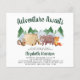 Cute budget-friendly rustic baby shower invitation featuring an illustration of woodland animals camping with their tent in the mountains and forest, and "Adventure Awaits" and the mother-to-be's name in a dark green script.