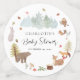 Simply create a cute woodland animals baby shower Confetti with this template featuring an owl, fox, bear, squirrel, deer, mushrooms and more for your cottage core theme shower for the mom-to-be.