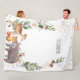 The design features a group of adorable forest friends (deer, bear, raccoon, fox, owl) and lush watercolor greenery.