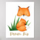 Three adorable woodland animal posters to choose from. This listing is for the adorable fox print. It reads "Dream Big"