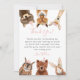 Cute woodland theme kid's birthday party thank you card featuring hand drawn illustration of a raccoon, fox, deer, owl, bear, and rabbit. The default text thanks the guests for coming to the party and for the gifts. Customize this product by adding your name at the bottom.