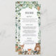 Designed to co-ordinate with our Woodland Greenery collection, this chic menu features a rustic watercolor greenery wreath and adorable woodland animals . Personalize it with your menu easily and quickly, simply press the customise it button to further re-arrange and format the style and placement of the text. Double sided. The Happy Cat Studio