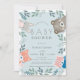 Woodland Animals Greenery Blue Boy Baby Shower Invitation