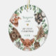 This design features elegant botanical greenery and adorable woodland animals
