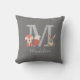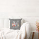 Cute pillow featuring a woodland fox and rabbit next to a personalised monogram initial and name. The reverse features woodland leaves scattered on a slate grey background. Perfect for a little one's nursery or bedroom. Designed by Thisisnotme©