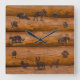 A perfect clock for the cabin or just for that rustic look. Woodland animals and foot prints in rusty iron on logs.