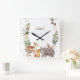 Woodland Animals Stripes Square Wall Clock