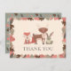 Woodland animals thank you card featuring a cute deer, fox, rabbit and woodland leaves. You can personalize with your own thank you message on the reverse surrounded by woodland leaves scattered on a sage green background, a perfect way to say thank you! Designed by Thisisnotme©