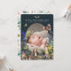 This whimsical woodland/forest gender-neutral birth announcement card features a navy blue background with woodland animals, such as a bunny/rabbit/hare, squirrel, and hedgehog, bird, butterfly, bees, ladybugs, wildflowers, and mushrooms. The reverse side features your photos and message. Personalize it for your needs. You can find matching products at my store.