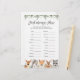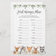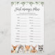 Woodland animals themed baby shower finish mommy's phrase game card features a watercolor nursery illustration and watercolor greenery eucalyptus garland and elegant handwritten style font.