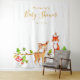 This woodland tapestry backdrop features handpainted woodland animal friends (a fox, bunnies and a deer) and a lovely gold font. It is suitable for a gender-neutral baby shower or even a kid's birthday party.
