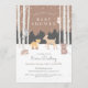 Celebrate the little one on the way with these adorable winter baby shower invitations! A sweet baby deer, a shy fox, a brown bear, raccoon, porcupine and wise old owl all join in the winter woodland with a soft brown background. The aspen trees are front and center while snow falls softly all around. Back has brown and white polka dot pattern. Perfect for gender neutral baby showers.