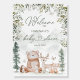 Transform your woodland baby shower into a magical forest with this adorable and unique welcome sign, featuring playful bears, foxes, deer, and bunnies, all beautifully painted in watercolor, guests will immediately be captivated.