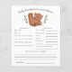 Cute woodland theme baby shower baby predictions and advice card featuring illustrations of a bear with greenery. The texts are editable. Perfect game to play during the shower and will definitely be a great keepsake! The card asks guests to predict what the baby would look like.