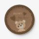 Cute brown paper plates with a woodland theme including a cute little bear and some brown hearts . Ideal to celebrate a baby shower of a young child's birthday . They can easily be personalized using the provided template .