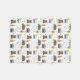 A fleece blanket featuring a pattern with illustrations of a bear, mountains, mushrooms, and arrows. Personalize the name.