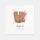 Cute woodland bear theme kid's birthday party paper napkin featuring illustration of a cub rolling on her back with pink hearts and bow. Perfect for your girl's rustic birthday party.