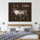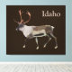 The Woodland Caribou, also known as the Mountain Caribou. Customizable text reading "Idaho" also appears. Caribou the only member of the family Cervidae in which both the male and female of the species produce antlers, which they periodically shed and re-grow. Their hooves balloon to the size of dinner plates during the winter to help the caribou walk on snow. The name “caribou” is of Aboriginal descent and means “shoveler” or “pawer”. It aptly describes the caribou’s habit of digging through snow to reach their main winter food source, lichen, a plant that grows on rocks and tree bark. Woodland Caribou thicker, broader antlers than do other Caribou. Their deep brown fur becomes nearly white in the winter. The Woodland Caribou is almost completely extinct in US. In the US they are found only in the Selkirk Mountains, which span Idaho and northern Washington. But only about 45 animals are left in this population! Humans today have more opportunity and ability to enter the species’ traditional habitat and affect its chances for survival. For example, when people snowmobile, heli-ski, cat ski or even build yurts, they compact the snow and make noise, creating three problems for these animals. The caribou find it difficult dig through compacted snow for lichen as easily through compacted snow. With part of their food supply cut off, they must depend solely on the lichen that grows on trees. Compacted snow also makes it easier for predators such as wolves to reach the caribou, removing the need to trudge though deep snow. Human activities also frighten caribou, causing them to alter their migration patterns and key behaviors associated with feeding, breeding, and seeking shelter. The Selkirk population of woodland caribou is listed as endangered under the Endangered Species Act (ESA) as they are in danger of becoming extinct throughout the Selkirk range.