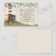 Baby shower book request cards featuring an illustration on front of a fox and a raccoon under a tree with green leaves and blue and white bunting.