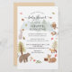 Simply create a cute woodland animals baby shower invitation with this template featuring an owl, fox, bear, squirrel, deer, mushrooms and more for your cottage core theme shower for the mom-to-be. TIP: Check out the other items in this collection with the same design for a complete and easy shopping experience for your baby shower party.