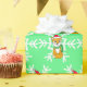 Cute hand drawn cartoon fox with a snowflake and green background Christmas wrap.