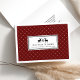Spread good cheer this holiday season with our simple and elegant card that's perfect for your business or corporate mailings. Your holiday greeting and company name are displayed in the center in crisp black lettering with a pair of buck deer silhouette illustrations joined by a single snowflake, surrounded by a subtle pattern of dotted diamonds in festive holiday garnet red. Add an optional inside message using the field provided.